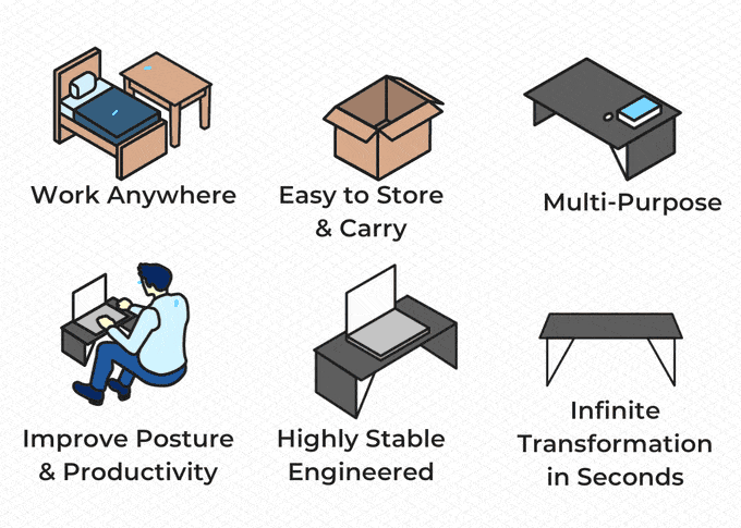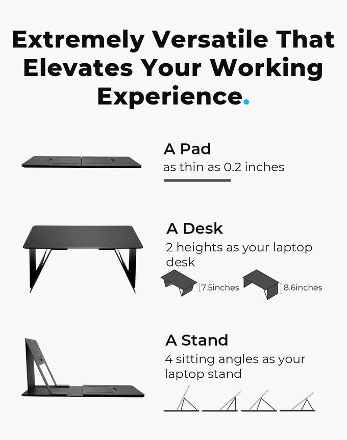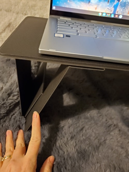 Enhance your work experience with our adjustable laptop desk featuring two height options. Choose the perfect angle for comfortable productivity.